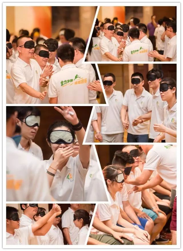 “盲人摸號”:規(guī)定時(shí)間內(nèi)不能發(fā)出文字語言找到自己團(tuán)隊(duì),并按順序排列。在不能使用視覺的環(huán)境下,在碰碰撞撞中大家都努力適應(yīng)環(huán)境的變化完成目標(biāo)。
