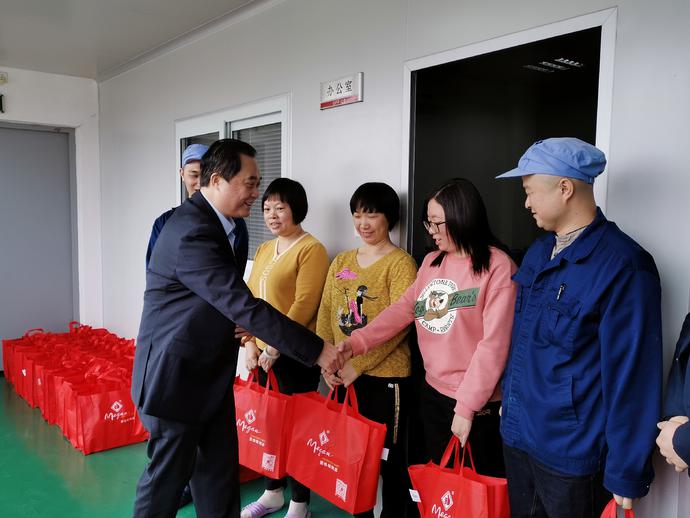 除夕夜,本來是個家庭團圓的日子,可疫情緊急,原本安排休假的員工紛紛回歸工作崗位,車間員工加班加點趕貨。為感謝這批“逆行者”的付出,董事長鄭漢杰在除夕這一天,來到車間對一線工人進行關(guān)心慰問,送上新春禮品。