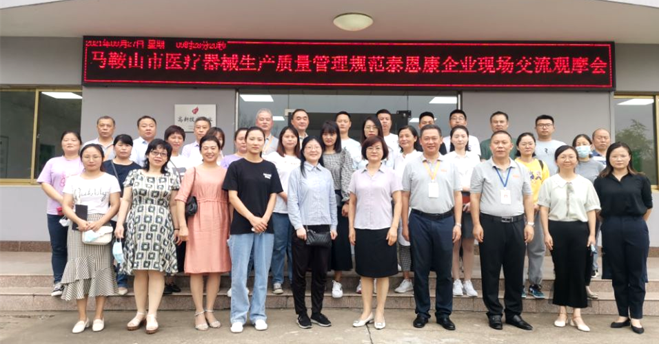 為全面貫徹落實《醫(yī)療器械監(jiān)督管理條例》,進一步推動馬鞍山市醫(yī)療器械生產企業(yè)不斷完善質量管理體系,提升質量管理能力和水平,2021年9月27日,在安徽藥品監(jiān)督管理局第七分局及馬鞍山工作站的精心組織下,馬鞍山市醫(yī)療器械生產企業(yè)同行來安徽泰恩康交流觀摩學習,羅億華總經理代表集團公司對全市醫(yī)療器械生產企業(yè)同行的到來表示熱烈歡迎,并帶領團隊熱情接待、積極參與交流學習,共同進步。