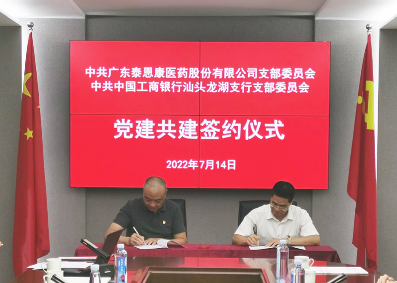 泰恩康與工商銀行龍湖支行黨支部舉辦黨建共建簽約儀式