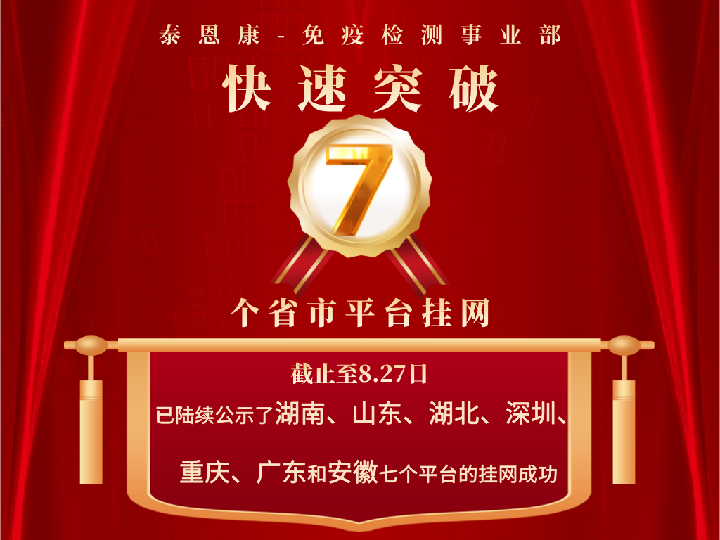 在獲證當日免疫檢測事業(yè)部團隊隨即按照計劃啟動了產品的國家醫(yī)保耗材編碼申請,并于7月1日完成數據公示,奠定醫(yī)保收費及采購平臺掛網基礎。自7月2日開始截止至今,一個多月時間內已陸續(xù)公示了湖南、山東、湖北、深圳、重慶、廣東和安徽七個省市平臺的掛網成功,剩余省市的掛網工作也在快速推進,充分展現了免疫檢測事業(yè)部高效的工作能力和卓越的執(zhí)行力。